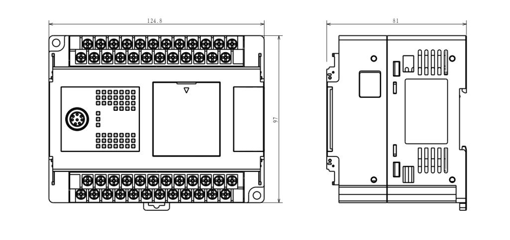 • Mặt trước hỗ trợ 1 module mở rộng plug-in nhỏ, có thể kết hợp với module IO kỹ thuật số, module analog, module nhiệt độ tùy ý, cắm và sử dụng ngay.